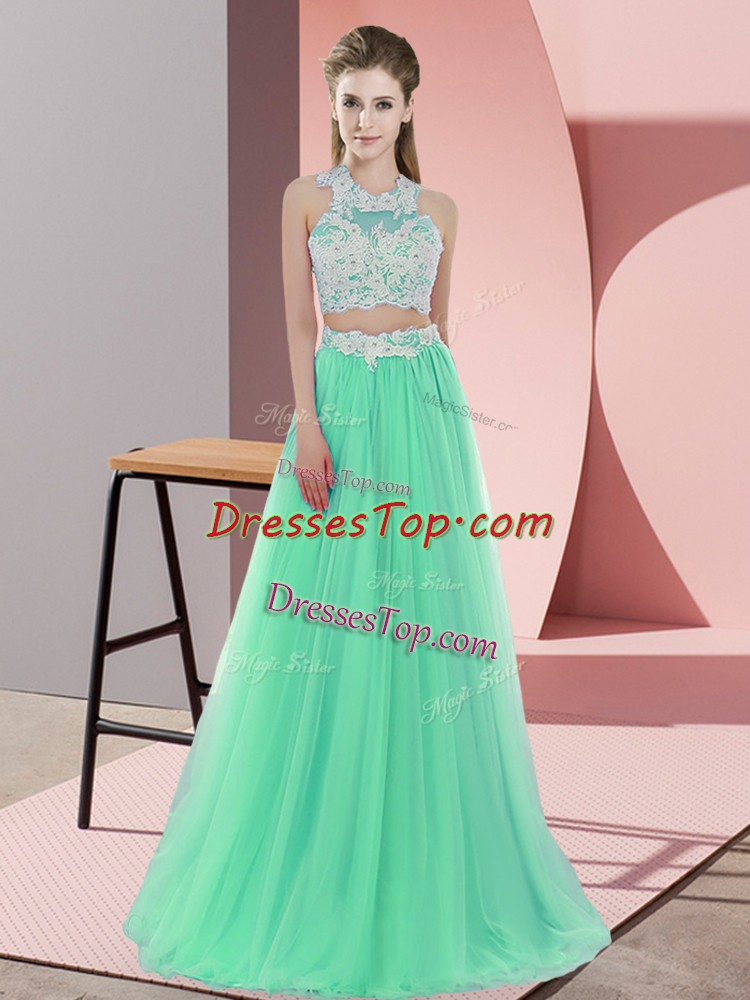 Apple Green Tulle Zipper Quinceanera Court Dresses Sleeveless Floor Length Lace