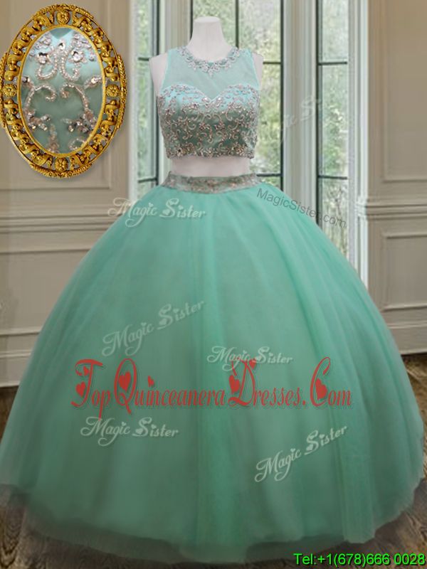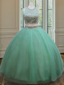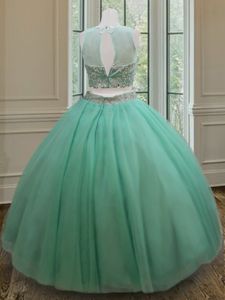 Apple Green Tulle Zipper Scoop Sleeveless Floor Length 15 Quinceanera Dress Beading