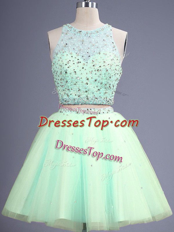 Apple Green Two Pieces Beading Quinceanera Court Dresses Lace Up Tulle Sleeveless Knee Length