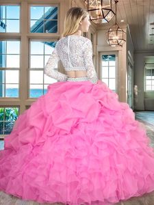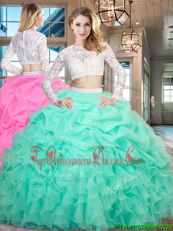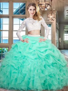 Apple Green Zipper Scoop Beading and Lace and Ruffles Quinceanera Dress Organza Long Sleeves