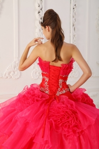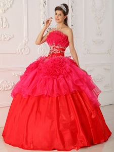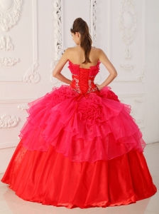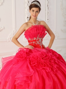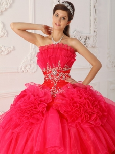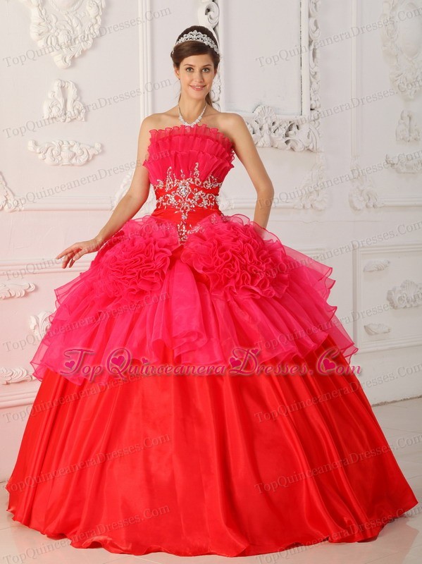 whitney houston quinceanera dresses, Applique Red Quinceanera Dress Strapless Organza Layers
