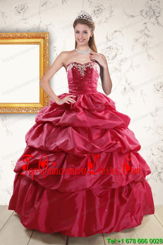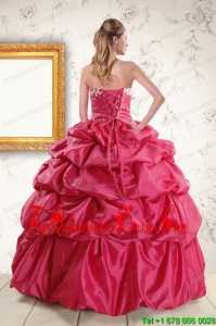 Appliques 2015 Beautiful Hot Pink Quinceanera Dresses with Lace Up