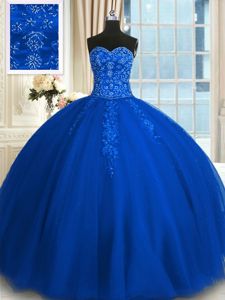 Appliques and Embroidery Quince Ball Gowns Blue Lace Up Sleeveless Floor Length