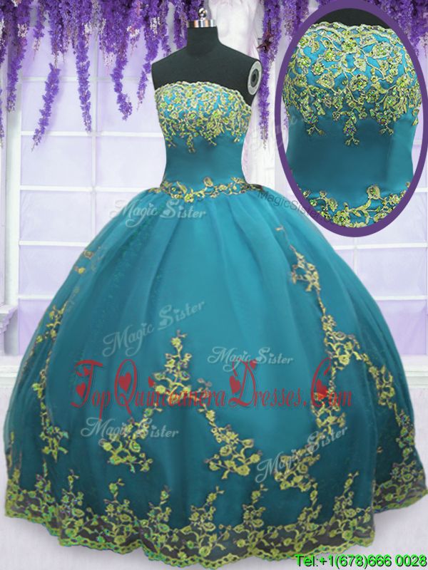 Appliques and Pick Ups Quinceanera Dress Olive Green Lace Up Sleeveless Floor Length