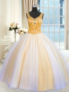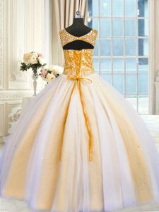 Appliques Ball Gown Prom Dress Baby Blue Lace Up Short Sleeves Floor Length