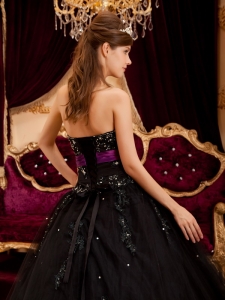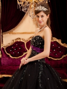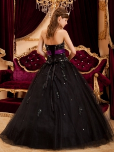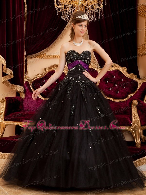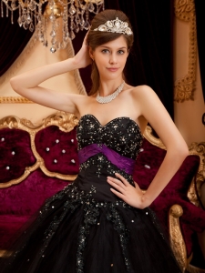 Appliques Black Quinceanera Dress Purple Sweetheart Tulle