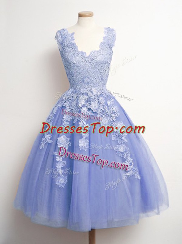 Appliques Court Dresses for Sweet 16 Lavender Lace Up Sleeveless Knee Length