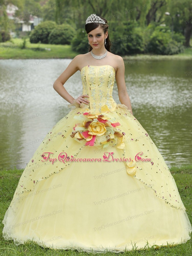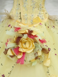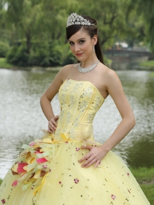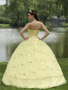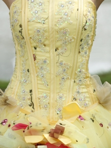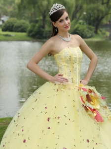 Appliques Embroidery Floral Light Yellow Quinceanera Dress Strapless