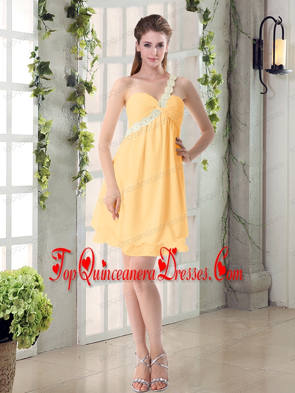 Appliques Mini Length One Shoulder Ruches Dama Dress