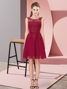 Appliques Quinceanera Court of Honor Dress Wine Red Zipper Sleeveless Knee Length