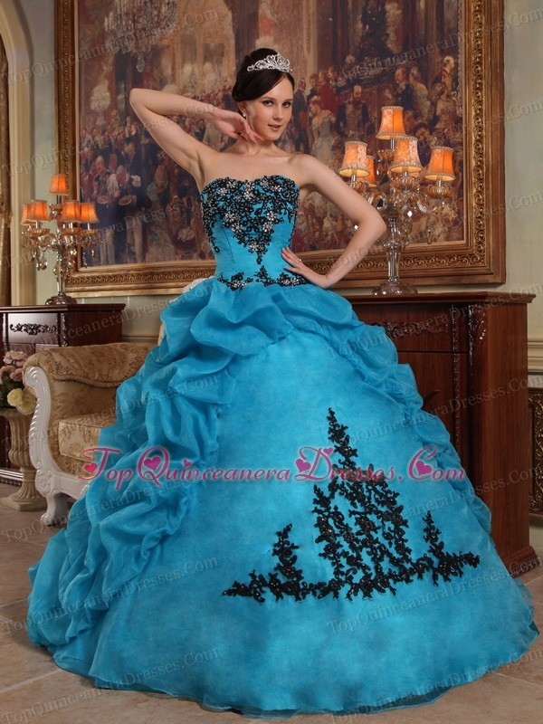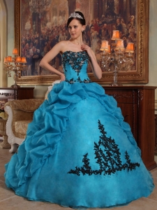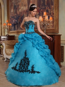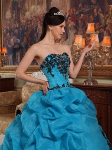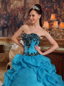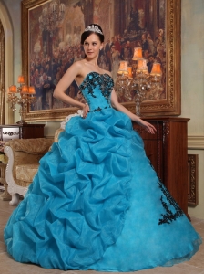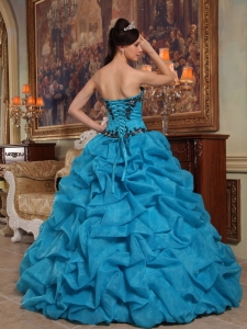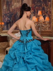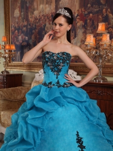 Appliques Quinceanera Dress Gown Beaded Pick-ups Aqua Blue