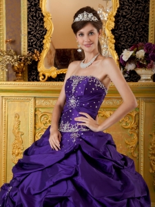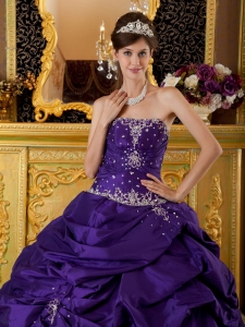 Appliques Sweet 16 Dresses for Purple Quinceanera Strapless