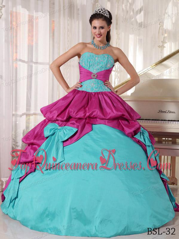 Aqua and Fuchsia Sweetheart Floor-length Appliques Quinceanera Dress