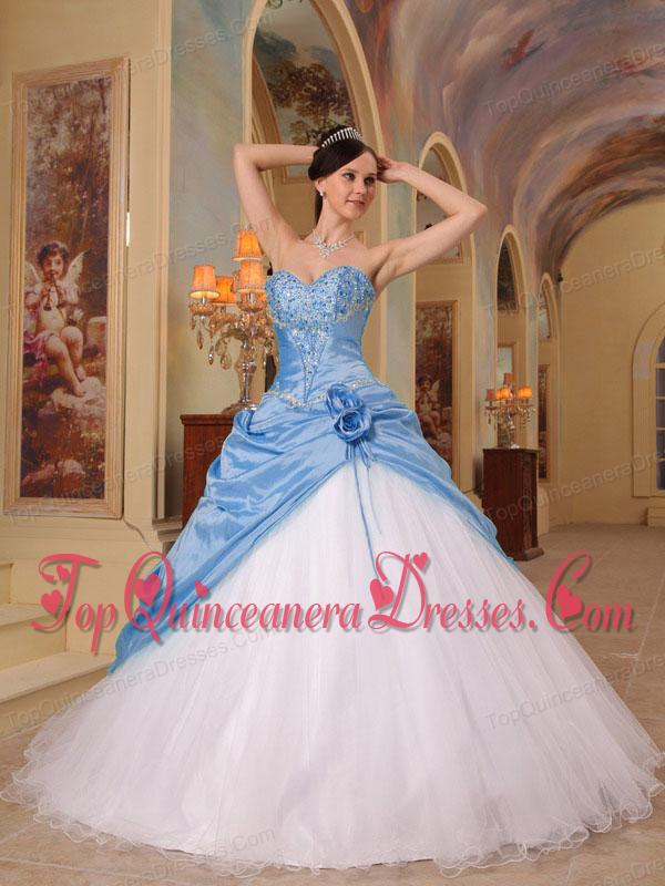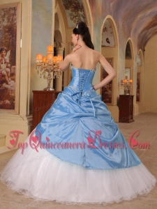 Aqua Blue and White A-Line Sweetheart Floor-length Beading Fashionable Quinceanera Dress