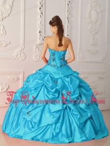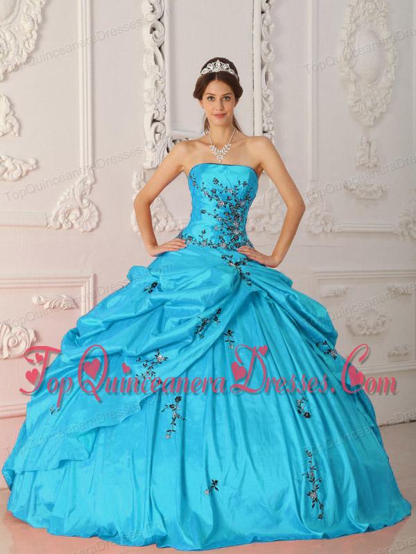 Aqua Blue Ball Gown Strapless Floor-length Taffeta Appliques Vestidos de Quinceanera