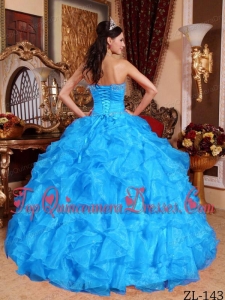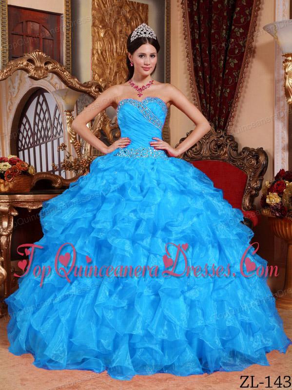 Aqua Blue Ball Gown Sweetheart Floor-length Organza Beading Quinceanera Dress