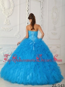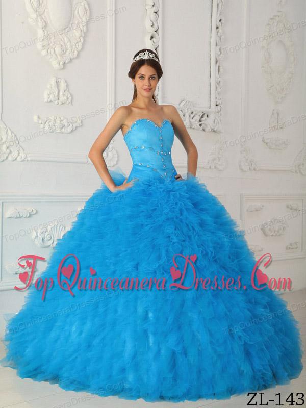 Aqua Blue Ball Gown Sweetheart Floor-length Satin and Organza Beading Quinceanera Dress