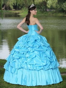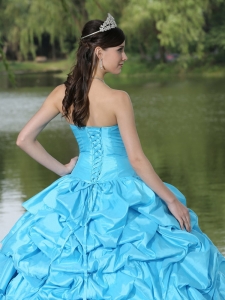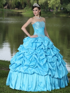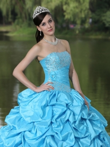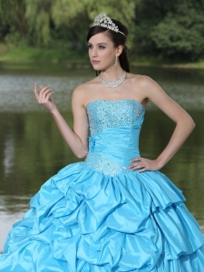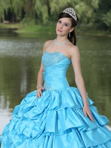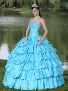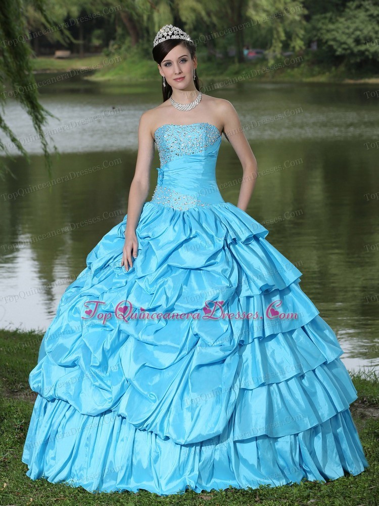 Aqua Blue Beaded Layered Quinceanera Dress For Clearance