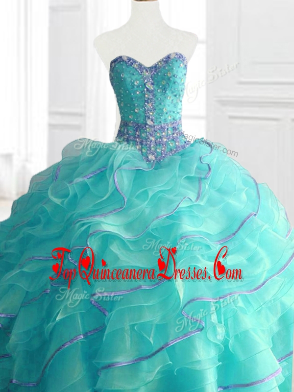 Aqua Blue Custom Made Quinceanera Dresses with Beading and Ruffles