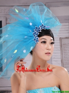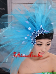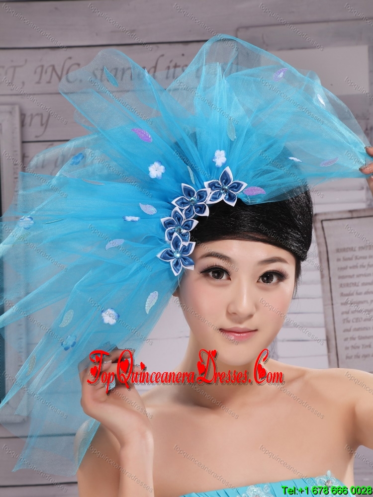 Aqua Blue Flowers Decorate Tulle Fascinators For Party
