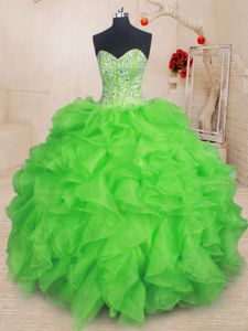 Aqua Blue Lace Up Quinceanera Dresses Beading and Ruffles Sleeveless Floor Length