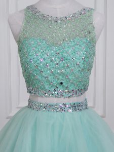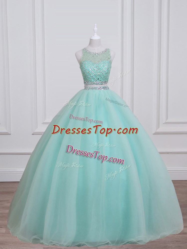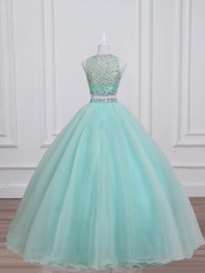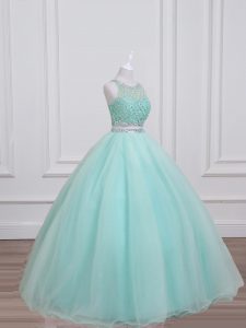 Aqua Blue Lace Up Sweet 16 Dresses Beading Sleeveless Floor Length