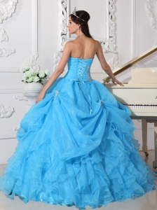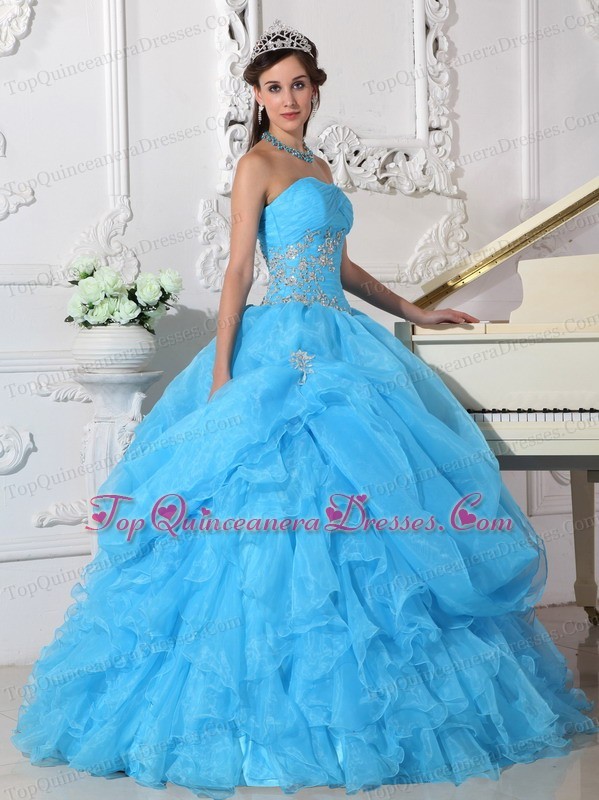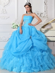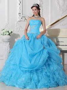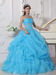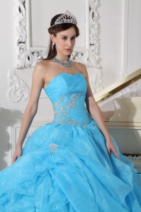 2013 discount quinceanera dress in aqua blue, Aqua Blue Quinceanera Dress Strapless 2013 Beading Ball Gown