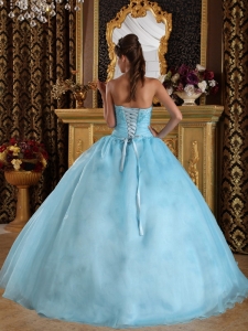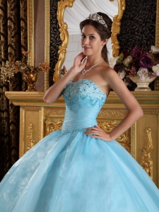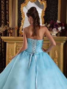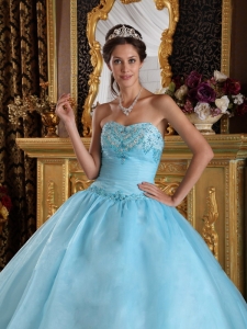 plus size quinceanera dress in aqua blue, Aqua Blue Quinceanera Dress Sweetheart Organza Beading Ball Gown