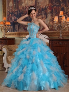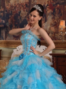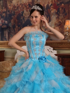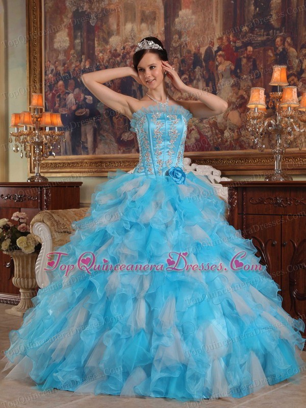 Aqua Blue Quinces Dress Gown Appliques Organza Strapless