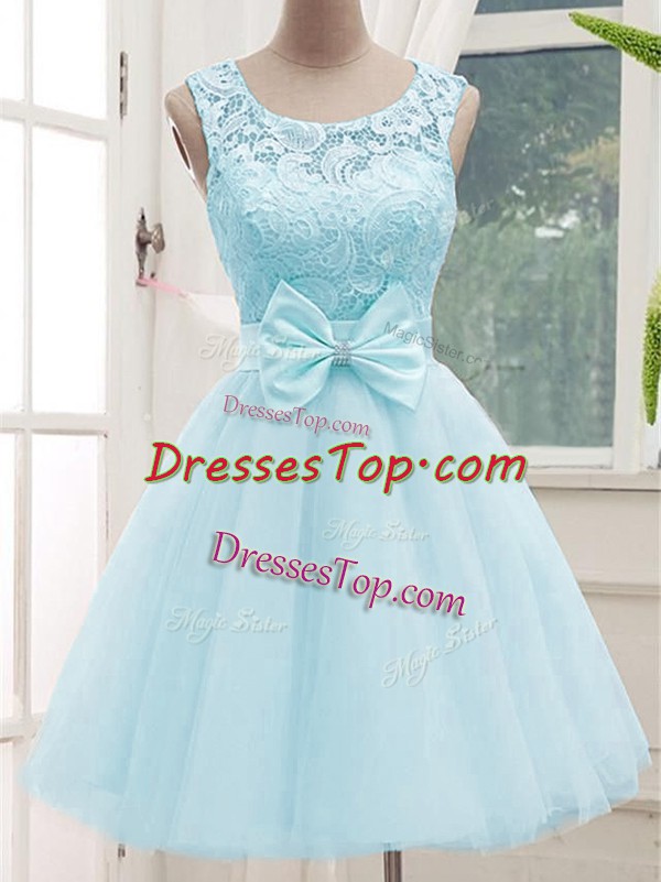 Aqua Blue Scoop Neckline Lace Court Dresses for Sweet 16 Sleeveless Lace Up