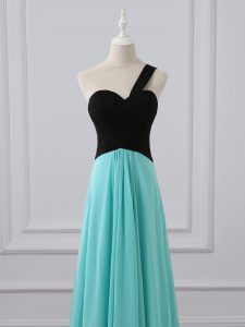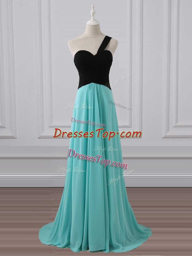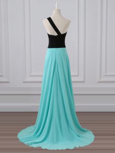 Aqua Blue Sleeveless Chiffon Brush Train Zipper Damas Dress for Prom and Party and Wedding Party