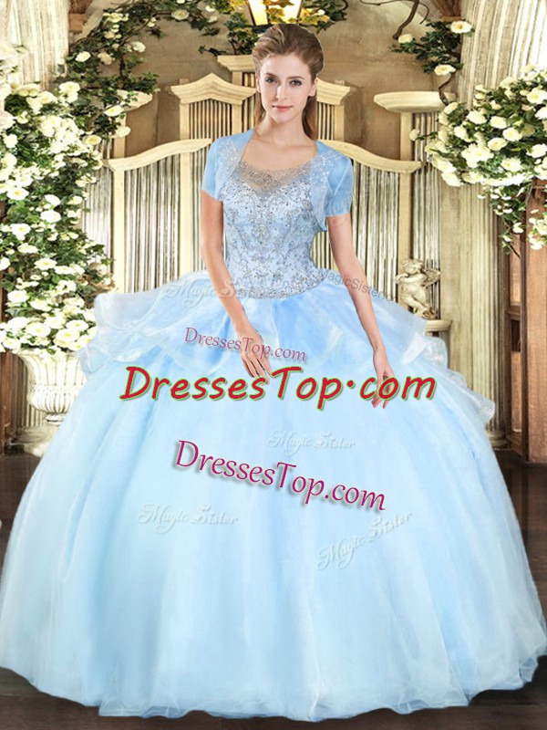 Aqua Blue Sleeveless Organza and Tulle Clasp Handle Quinceanera Dress for Military Ball and Sweet 16 and Quinceanera
