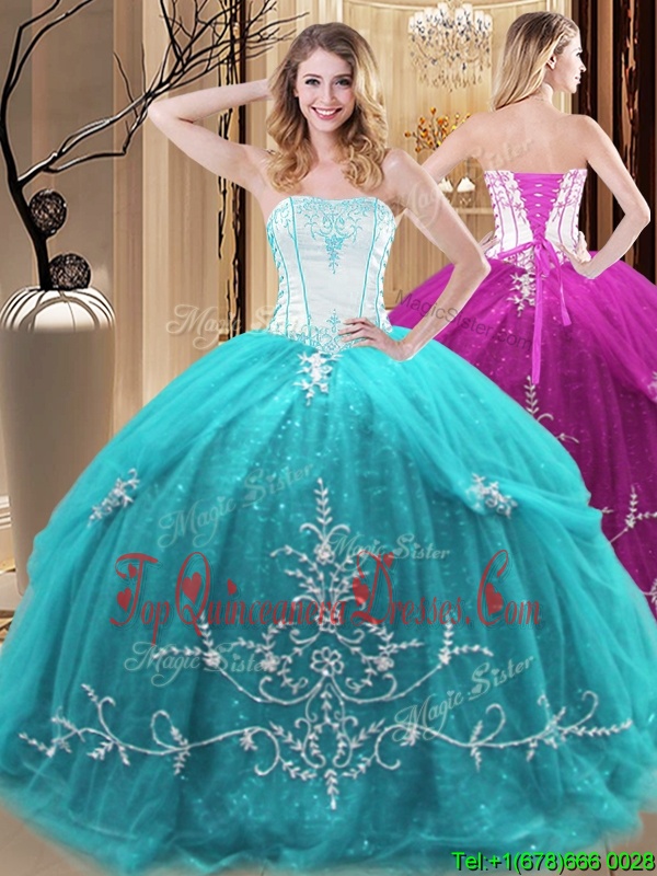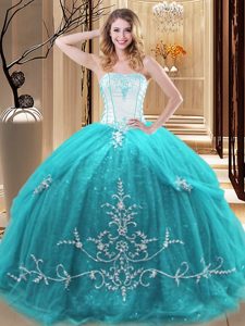 Aqua Blue Sleeveless Tulle Lace Up Quince Ball Gowns for Military Ball and Sweet 16 and Quinceanera