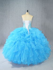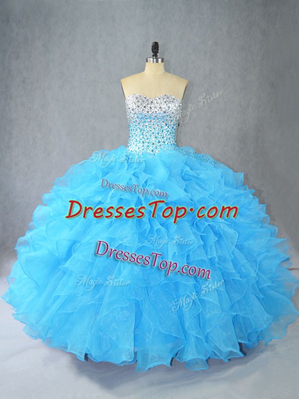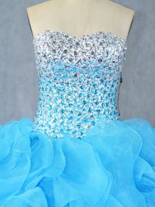 Aqua Blue Sweetheart Lace Up Beading and Ruffles Quinceanera Dresses Sleeveless
