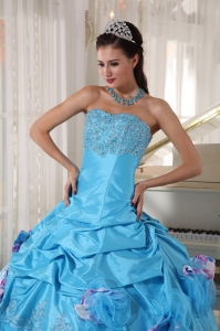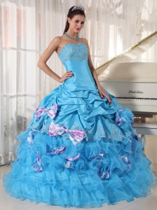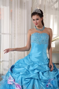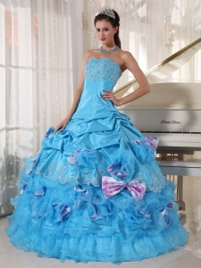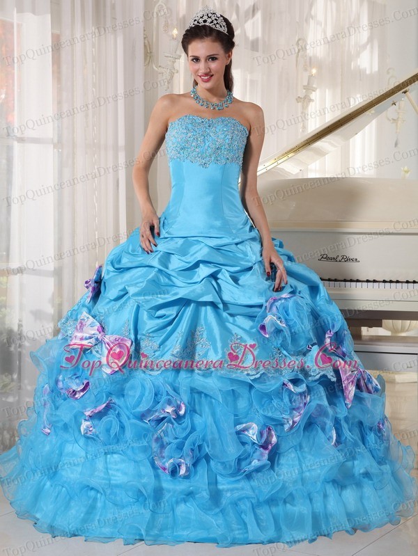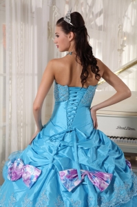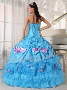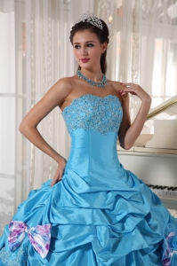 Aqua Quinceanera Dress With Beading And Colored Bow