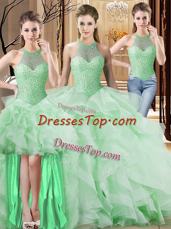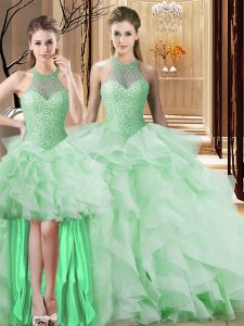 Artistic Apple Green Sleeveless Beading and Ruffles Lace Up Quinceanera Gowns