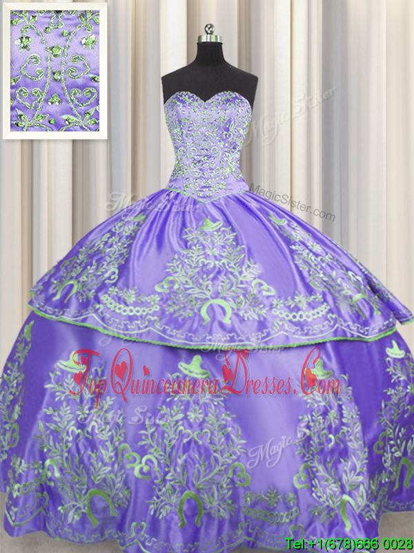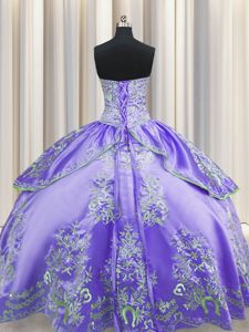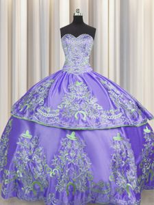 Artistic Beading and Embroidery Vestidos de Quinceanera Lavender Lace Up Sleeveless Floor Length