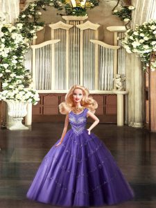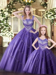 Artistic Eggplant Purple Scoop Lace Up Beading Quinceanera Gowns Sleeveless