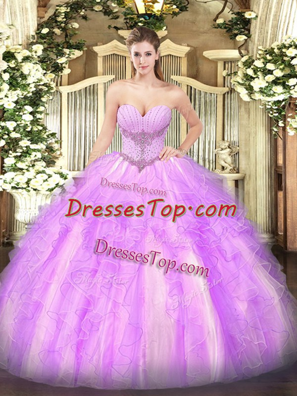 Artistic Lilac Sleeveless Beading and Ruffles Floor Length Sweet 16 Dress