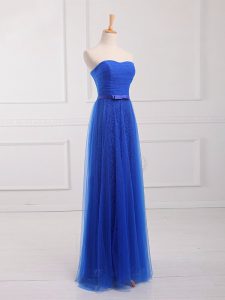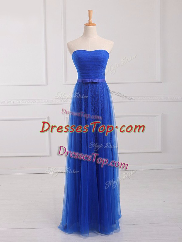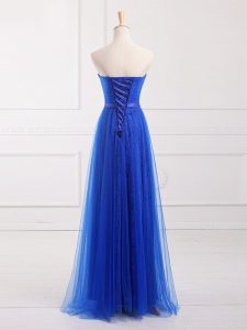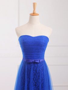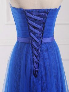 Artistic Royal Blue Dama Dress for Quinceanera Prom and Party and Wedding Party with Belt Sweetheart Sleeveless Lace Up