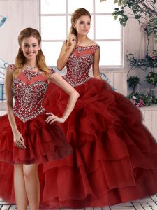 Artistic Sleeveless Brush Train Beading and Pick Ups Zipper 15th Birthday Dress