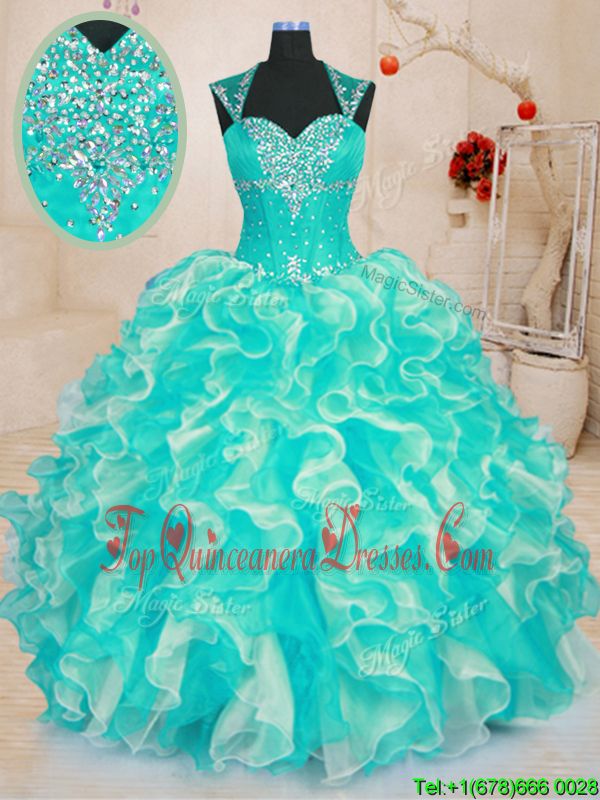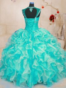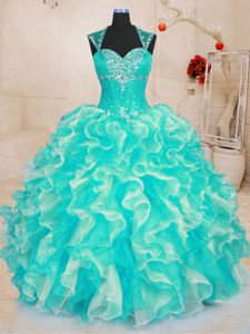 Artistic Sleeveless Lace Up Floor Length Beading and Ruffles Vestidos de Quinceanera