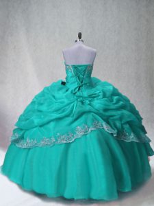 Attractive Aqua Blue Organza Lace Up Sweetheart Sleeveless Floor Length Quinceanera Gowns Beading and Appliques