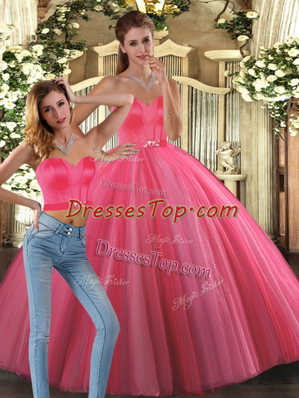 Attractive Coral Red Tulle Lace Up Sweetheart Sleeveless Floor Length Quince Ball Gowns Beading