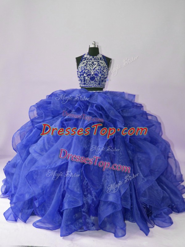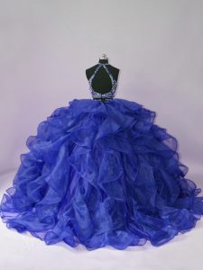 Attractive Floor Length Royal Blue Sweet 16 Dress Organza Sleeveless Beading and Ruffles