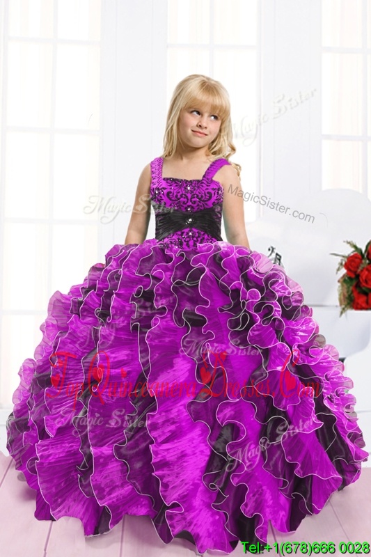 Attractive Fuchsia Ball Gowns Beading and Ruffles Glitz Pageant Dress Lace Up Organza Sleeveless Floor Length