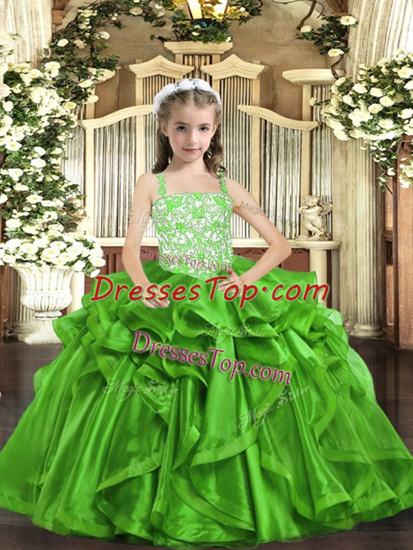 Attractive Green Sleeveless Beading and Ruffles Floor Length Pageant Gowns For Girls