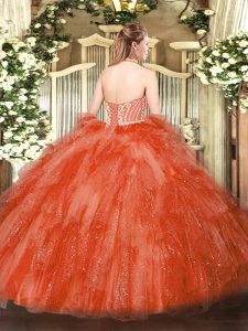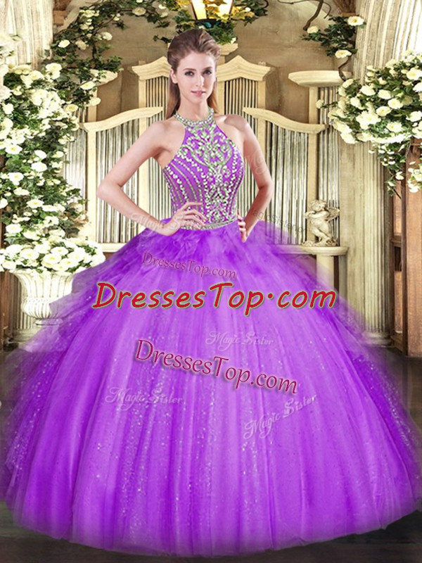 Attractive Lavender Halter Top Lace Up Beading and Ruffles Sweet 16 Quinceanera Dress Sleeveless