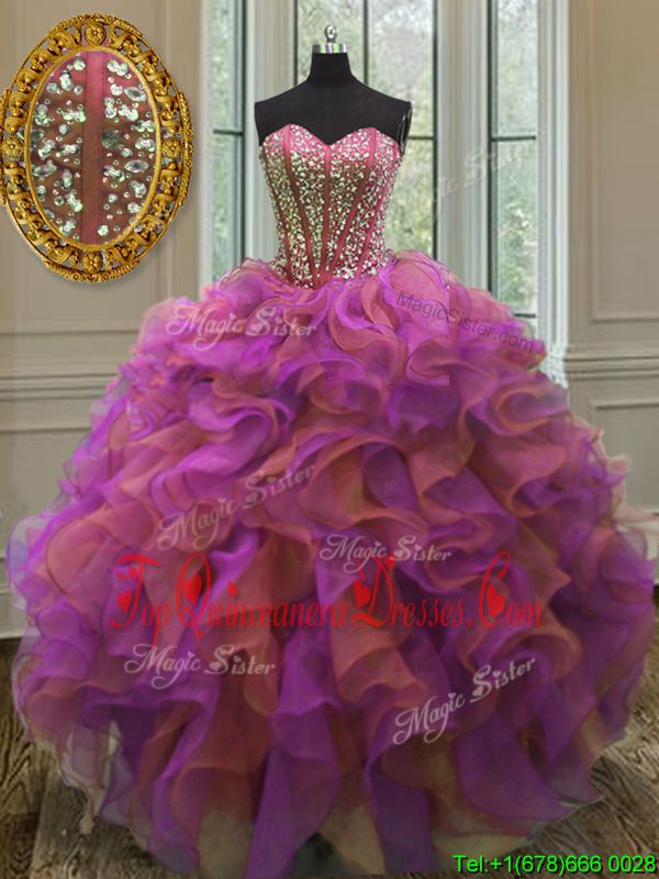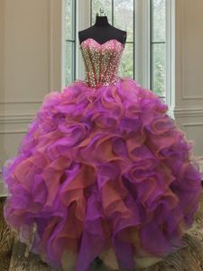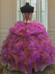 Attractive Multi-color Organza Lace Up Sweetheart Sleeveless Floor Length Ball Gown Prom Dress Beading and Ruffles