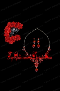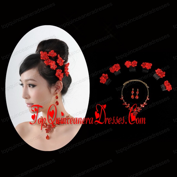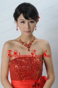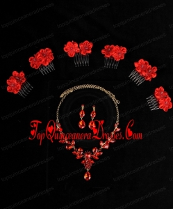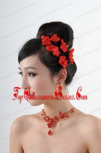 Attractive Necklace and Earing Wedding Jewelry Set with Hairpins